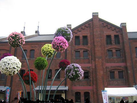 赤レンガ倉庫が、花