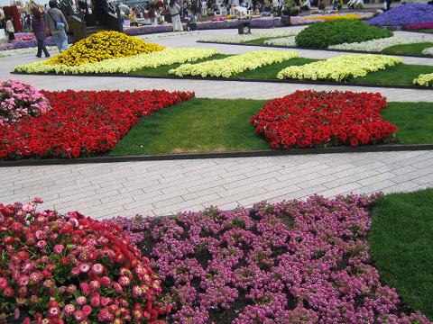 1号館と2号館の間がお花畑で埋め尽くされていたのです。